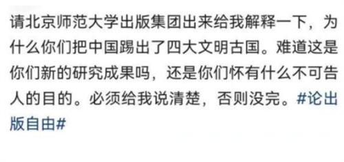近日,一條關(guān)于“北師大出版社回應(yīng)把中國踢出四大文明古國”的新聞登上了網(wǎng)絡(luò)熱搜,這個(gè)話題也很快引發(fā)了網(wǎng)友的討論。