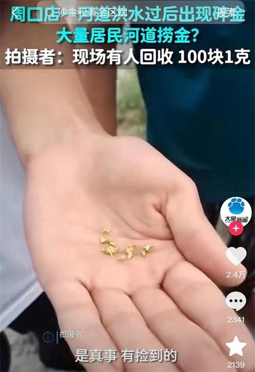 當地的村民表示,這些金子全部都是在洪水過后出現在河道里面的,而且這幾天來到河道里面撿金子的村民變得越來越多,甚至還有人在現場用100塊錢來收購這些金子。村民們也不知道這些金子到底是從哪里來的,而且也不知道這些金子到底是真的還是假的,反正覺得這件事情非常的有意思,所以就想來河道里面試試運氣,才會有這么多的村民來到這里撿金子。對于這件事情,有相關的專家認為這些金子極有可能是來自于某些珠寶店里面,被洪水侵襲了以后的珠寶店,把店里面的所有金子都被沖走,所以才會來到洪水里面。