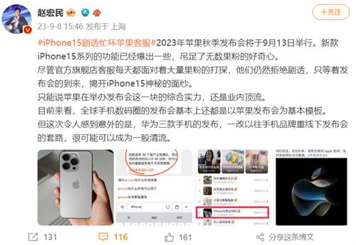 9月8日消息,蘋果2023年秋季發布會時間臨近,有關iPhone 15相關的爆料也是頻頻登上熱搜,比如全系配備靈動島和Type c接口,新增灰色和粉色的色系,價格的上漲等等,各種各樣的劇透層出不窮,很多果粉面對網上的這些爆料信息更是通過各種渠道尋求驗證,某電商平臺蘋果官方旗艦店的客服咨詢排隊更是達到了30多位,不過對于眾多網友的提問,蘋果的客服人員仍舊是沒有透露任何關鍵信息。