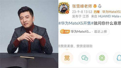 北京時間的9月8日,華為mate60Pro+手機以及華為MateX5手機宣布開始預定,這兩款手機正式開售之后,張雪峰在微博上發送了一條詢問華為究竟是什么意思的消息,就在張雪峰發送完這條微博消息之后,網友們對于張雪峰所發布的這條消息紛紛進行了評論,有些網友紛紛表示,張雪峰老師已經連續兩次都壓錯了方向,在買了50之后剛過一個星期又出了huawei mate60,結果剛把60買到手之后,華為又開始預售MateX5了,張雪峰老師的心態有沒有崩?也有很多網友則對張雪峰老師進行了調侃學問,張雪峰老師想不想交剛買的華為mate60手機,當做二手手機賣出去。