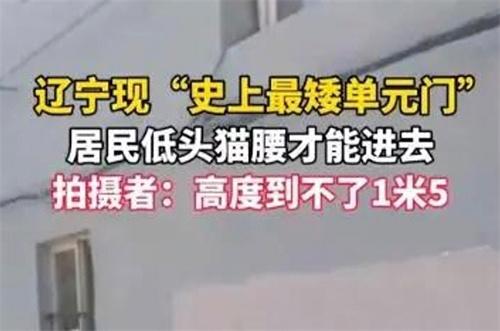 遼寧省朝陽市在最近被爆料有最矮單元門。在朝陽市的張先生9月7日裝寬帶的過程中偶然間發現了十分獨特的建筑現象,令人感到特別驚奇,這個現象的奇特之處在于單元門的高度很低,甚至不到1米5,人們想要進入單元門,一定要彎腰才能夠通過,這個場景引發了很多人的關注,社交平臺也引起了人們的討論。