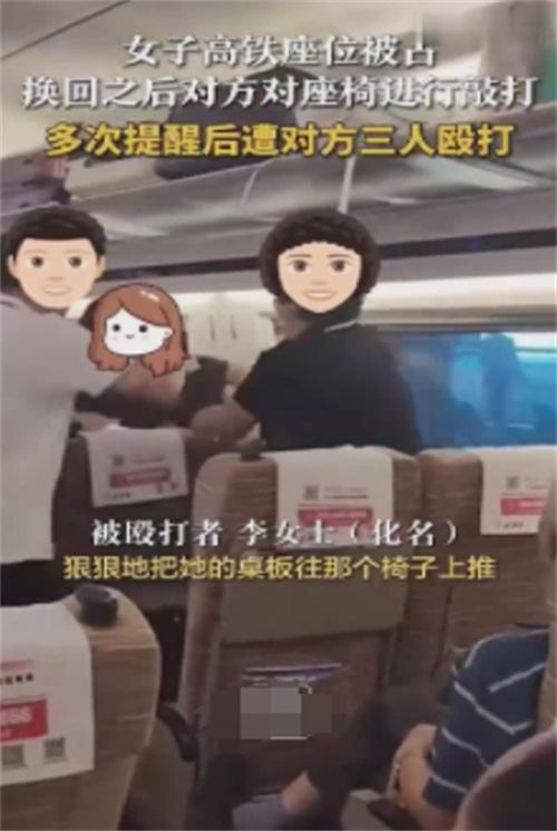 近日,一女子在高鐵上因?yàn)楸粍e人占座,提出換座結(jié)果被三人毆打的新聞登上熱搜,引起人們的注意。據(jù)了解當(dāng)事人李女士從太原南站登上G2610次高鐵,卻發(fā)現(xiàn)自己的座位被一名男子霸占,她想要坐到自己的位置上,男子卻表示想和自己換座。拒絕了對(duì)方的李女士,便開始受到男子一家人的騷擾,后面甚至還被他們毆打。