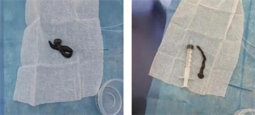 眾所周知螞蝗的身上長有吸盤,這個吸盤可以幫助螞蝗緊密地吸附在人體的氣管壁上,手術期間如果醫生直接用鉗子生拉硬拽,特別擔心會損傷患者的氣道,引起氣管粘膜損傷等一系列的并發癥。如果在取出的過程中不慎把螞蝗扯斷,吸盤如果還殘留在體內就會增加二次手術的風險,在醫生和醫務人員的默契配合之下,通過全麻無痛支氣管鏡將這支長達8厘米左右的螞蝗取了出來。手術結束之后韋某痰中帶血、咳嗽、咳痰的異物感徹底消失,傷口很快恢復正常韋某的精神狀態良好目前已經恢復出院。