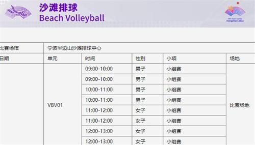 板球比賽在2010年廣州第16屆亞運會中也成為了正式的亞運會比賽項目,杭州亞運會的板球比賽本次采用的是20回合制度,浙江工業大學板球場的地址位于杭州西湖區,比賽結束之后也可以作為師生的活動中心。19號當天舉行的沙灘排球項目的半邊山沙灘排球中心的地點在寧波象山縣,該排球中心面朝大海還包含了可以容納2000名觀眾在現場觀看比賽的c字形半開放式主場館、熱身場地、訓練場、副場館等等。