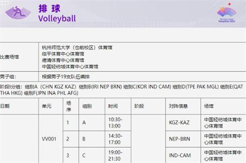 杭州第十九屆亞運會的第1輪賽事將會在北京時間9月19號上午9點正式開始,沙灘排球板球的項目分別會在浙江工業大學板球場以及寧波象山半邊山沙灘排球中心舉行第1場小組賽。另外在9月19號當天比賽的運動項目還有足球、排球等等。
