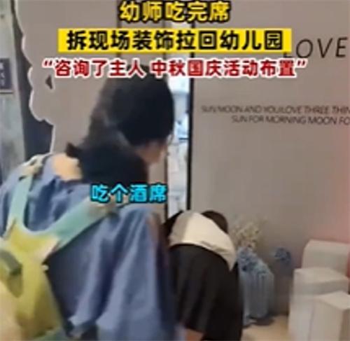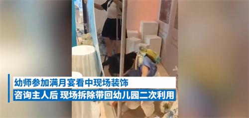 事后這一名幼師也針對網(wǎng)上的視頻作出了回應(yīng),她表示當(dāng)時在參加宴席的時候就看到宴席廳外面的裝飾非常的漂亮,有很多造型非常漂亮的氣球和板材。尤其是在得知這些裝飾品在酒席結(jié)束之后就沒了用處,就想到了幼兒園馬上就要舉辦中秋國慶節(jié)的活動,正好可以將這些材料二次利用。因此在宴會結(jié)束之后就詢問了宴會主人這些氣球和板材還有沒有用得到回復(fù)是宴席結(jié)束之后,這些材料都要直接拆除。就開始呼叫自己的同事一起幫助拆除搬運。