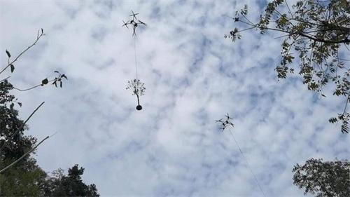 在對該項目的兩側山體進行林相改造時,所選擇的樹苗高度基本上都在兩米到三米之間,這些樹苗的直徑基本上都已經超過了10公分。在進行移栽時,所有的樹苗根部上都連接著土塊,一棵樹的重量已經達到了100兩斤左右,對于本次山體改造項目的工期時間非常緊張,這由于本項目里面的山體較為陡峭。如果想要使用人工去運輸樹苗的話,有著極大的難度,同時也將會對三體上現存的植物以及施工進度帶來影響,為了多方面考慮,最終選擇使用無人機在空中進行作業。