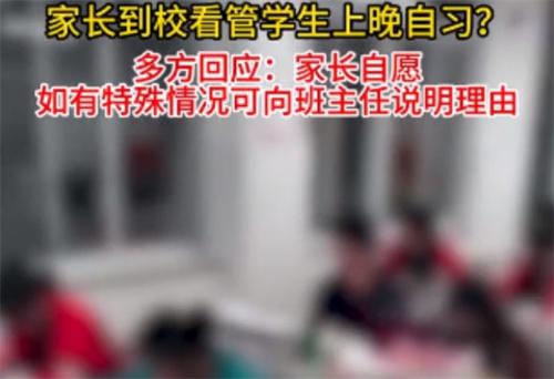 近日,有網友在網上發文吐槽稱,自己被學校叫到班級里看著學生上晚自習,這個視頻在網上發布后引起眾多網友的熱議。一些網友支持學校的做法還有一些網友反對學校的做法,10月10日,這起事件中的學校回應了記者,學校方面并沒有要求家長參與看晚自習,學校也不主張這樣做,很有可能是家委會出面要求家長前來開晚自習。