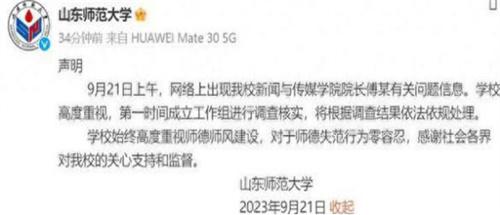 這名被舉報的山東師大新傳學院的院長傅某,出生的時間是1956年,在山東師范大學新聞與傳媒學院擔任院長,同時也是博士生導師,在中國文藝評論家協(xié)會還擔任副主席。山東師范大學在網(wǎng)絡上曝光信息的當天就通過官博發(fā)布聲明表示,學校對于網(wǎng)絡上所出現(xiàn)的信息高度重視,并且在第一時間成立了相關的工作組,對此事進行核實調查,最終的處理會根據(jù)核實調查的結果進行依法依規(guī)處理。山東師范大學一直以來對于師德師風的建設都非常重視。對于任何師德失范的行為均采取零容忍的態(tài)度,同時對于各界人士對師山東師范大學的監(jiān)督和支持以及關心表示感謝。