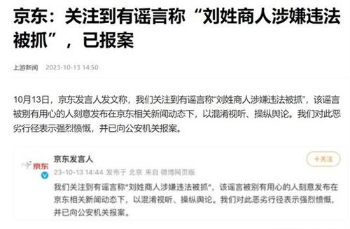 北京時(shí)間10月13日,近期在社交平臺(tái)上面出現(xiàn)了一則令人非常關(guān)注的消息,這則消息是京東的某位劉姓商人由于涉嫌違法犯罪活動(dòng)被相關(guān)部門抓捕。對(duì)于這一條消息,京東方面也是進(jìn)行了強(qiáng)烈的譴責(zé),同時(shí)表示也已經(jīng)向公安機(jī)關(guān)進(jìn)行了報(bào)案,表示這個(gè)消息是一些有心之人故意發(fā)布出來的謠言,想要通過這種方式來操縱輿論,希望所有的市民朋友們和投資者不要去相信。