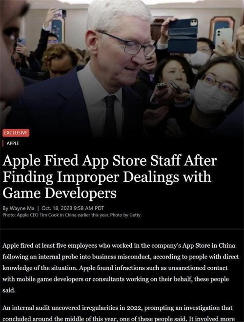 根據《The Information》發(fā)送的報道顯示,這位已經被蘋果辭退的員工名字姓王,在中國區(qū)這位王姓的員工,曾經在蘋果應用商店的營銷部門工作過。這位王姓員工的主要任務就是去和軟件的開發(fā)者去進行溝通,達成合作,為蘋果應用商店去推一件更多好用的APP。