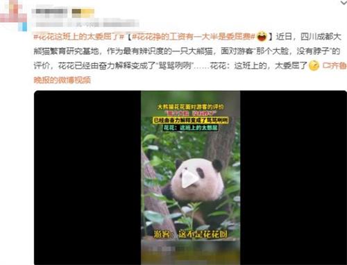 近日,四川成都大熊貓繁育研究基地中,一眾游客圍著大熊貓花花調(diào)侃稱,花花沒有脖子,花花聽到游客的調(diào)侃聲后向周圍的游客奮力的解釋。對此有網(wǎng)友表示,花花在這里上班簡直是太委屈,恐怕掙的工資有一大半是他的委屈錢。據(jù)了解大熊貓花花居住在成都大熊貓繁育研究基地中,花花可以稱得上是這個基地中的一只網(wǎng)紅大熊貓,吸引了很多游客的喜愛和關(guān)注。
