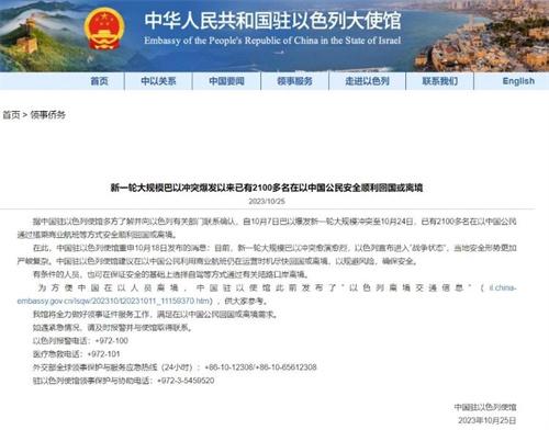 中國駐以色列使館了解到自從10月7日巴以新一輪沖突截止到10月24日,已經有超過2000多名在以色列的中國公民通過各種方式安全回國或者離境。中國駐以色列使館也重申前幾日發布的消息,并表示新一輪的巴以沖突愈演愈烈,以色列也正式宣布進入了戰爭狀態當地地區的安全形勢復雜,中國駐以色列使館建議中國公民利用商業航班仍處于運航時機,盡快回到國內或者是離開以色列境內。