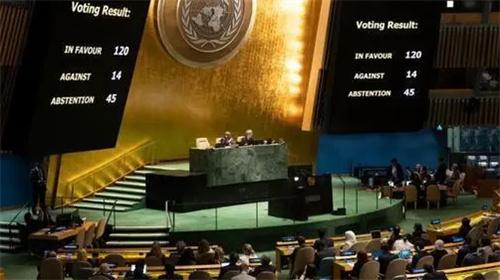 根據多家外國媒體發送的報道顯示,在美國當地時間的10月27日,如何解決巴以沖突的決議草案在第十屆聯合國緊急大會特別會議上進行了投票,該草案最終獲得了120票的同意票,14票的反對票,還有45票選擇了棄權。