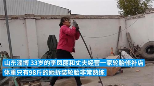 山東淄博有一位女子在5分鐘之內就裝好了300斤重的輪胎。這位女子叫做李鳳麗,她與自己的丈夫經營著一家輪胎修補店,他只有98斤,拆裝輪胎的動作十分熟練,對于記者的詢問,她表示一只輪胎有300斤重,三五分鐘就可以換完一個,有的時候一天最多可以換七八個,這樣也是想多賺錢,供自己的孩子上大學。