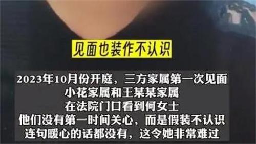 何女士介紹稱自己的室友小花由于和男友王某某發生感情糾紛,2022年11月27日晚上,王某某找借口為小花送衣服,提前準備了菜刀,在小花開門之后,便對著小花一頓亂砍,隨后小花沖進了何女士的床上躲避,將正在睡夢中的何女士驚醒。何女士和小花面對著提刀的王某某,大聲呼救求饒。最終何女士的腰部和手臂部中了20多刀,雙手血管,肌腱全部斷裂。在此期間,何女士一直對于王某某苦苦哀求,小花也由于身受重傷陷入昏迷。王某某以為小花死了,才逐漸的冷靜下來,并選擇報警。事發之后,王某某被警方帶走。小花和何女士被送往西安鳳城醫院治療。經過鑒定何女士和小花均屬于輕傷一級。何女士的面部則為確定10級傷殘。此案于2023年10月份開庭,三方家屬在法院門口第1次見面。王某某和小花的家屬在法院門口見到何女士時,并沒有對何女士進行關心,而是假裝不認識何女士,也沒有說一句暖心的話。