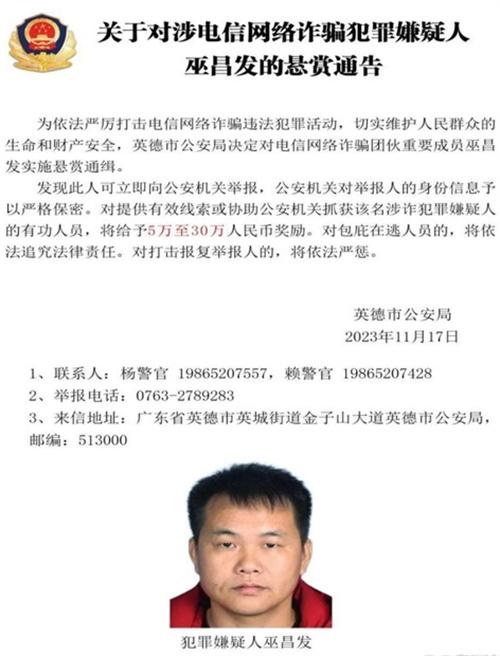 英德市公安局除了發(fā)布了目前滯留國外的40名詐騙人員的具體消息之外,同時還對外發(fā)布了一條懸賞通告。在這條懸賞通告里面總共有7名人員,7名人員涉嫌了電信網(wǎng)絡詐騙,對外所發(fā)布的懸賞通告里面表示,如果有人提供了這7名犯罪人員的線索的話,可最高能夠得到30萬元的獎勵。