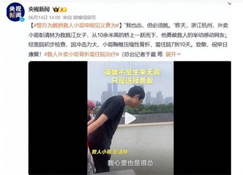 據(jù)了解這名跳橋救人的小哥其實是外賣騎手,當時他在送餐突然發(fā)現(xiàn)有人跳橋自殺,沒有多做思考之后立刻脫下衣服跳入到河里面去把人給救了上來,由于當時并沒有做任何的防護措施,因此在將人救上來之后這名小哥也是出現(xiàn)了胸椎壓縮性骨折,這是因為在入水的時候受到?jīng)_擊力所導致的,隨后小哥也是同樣被送到醫(yī)院進行治療。小哥在身體恢復之后也是重新投入到自己的工作當中,在此期間還申請成為了杭州亞運城市的志愿者,而他也是一名大學生。