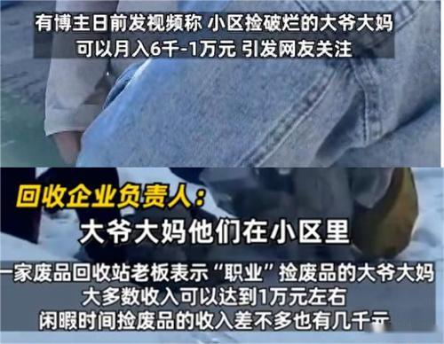 根據(jù)媒體最新報(bào)道日前有博主在網(wǎng)上發(fā)布視頻稱生活中隨處可見的撿破爛的大爺大媽,她們的月收入可以達(dá)到6000到1萬(wàn)元。根據(jù)博主所發(fā)布的視頻中某回收企業(yè)的負(fù)責(zé)人表示,生活中隨處可見將撿廢品當(dāng)職業(yè)的大爺大媽們,大多數(shù)的收入都可以達(dá)到1萬(wàn)元左右,如果是利用自己閑暇的時(shí)間減廢品大爺大媽們的收入可以達(dá)到幾千元。這個(gè)廢品回收公司的負(fù)責(zé)人表示,他們撿的破爛是全品類的,比如紙箱子、紙、PET塑料瓶、亞克力、餐盒等等。紙箱一公斤是1塊2,餐盒一公斤是4塊錢左右,所有的廢品價(jià)格都是浮動(dòng)。