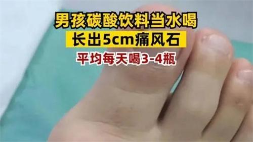 據(jù)了解,陜西西安有一位19歲男孩每天喝很多的飲料,導(dǎo)致腳趾關(guān)節(jié)紅腫疼痛。這位男孩在前往西安市第五醫(yī)院檢查后,被醫(yī)生確診為痛風(fēng),并且有5厘米的痛風(fēng)石。這位男孩很小的時(shí)候就喜歡喝碳酸飲料,大概每天都會(huì)喝三四瓶,最多的時(shí)候一天可以喝掉7瓶飲料,也就是1000多毫升的量。之后腳部紅腫,疼痛難忍,經(jīng)常發(fā)作才來到醫(yī)院,經(jīng)檢驗(yàn)后發(fā)現(xiàn)男孩腳趾關(guān)節(jié)處堆積了大量的痛風(fēng)石,目前經(jīng)過微創(chuàng)手術(shù)已經(jīng)清理完畢恢復(fù)良好。