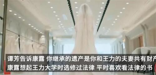 譚芳是上海家與家律師事務(wù)所的負責(zé)人通過她和康露的對話得知康露的父母在去世之前,在上海一共有9套房產(chǎn)和商鋪,名下還有多萬元的銀行存款包括理財產(chǎn)品總價值大概是2億元。譚芳得知康露的家庭詳細情況之后,向康露表示因為她父母在去世之前并沒有立任何的遺囑,遺產(chǎn)將會按照法定繼承,但康露的爺爺奶奶和外公外婆都已經(jīng)過世,康露作為唯一的法定繼承人也將會繼承他父母所有的遺產(chǎn)。根據(jù)婚姻法的1062條的規(guī)定婚姻關(guān)系,存續(xù)期間任何一方所繼承到的財產(chǎn)都是歸夫妻共同所有,因此康露繼承到的父母遺產(chǎn)是和丈夫的夫妻共有財產(chǎn)。康露這個時候才想起來王力在上大學(xué)的時候選修過法律,果然不久之后康露就收到了法院寄來的補充訴訟,丈夫王力要求分割康露繼承的父母遺產(chǎn)。