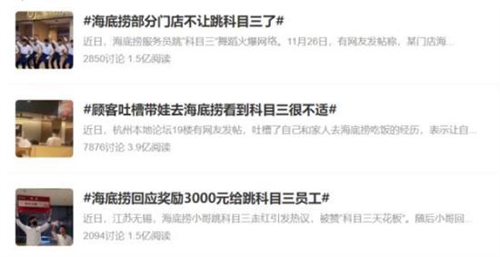 顧客來到海底撈只需要給服務員說出我要科目三,就會有服務員立馬來上一段魔性的舞蹈,搭配上節奏鮮明的音樂,讓火鍋店看科目三舞蹈的話題瞬間登上熱搜榜,甚至專門去火鍋店點科目三的人也開始多了起來,一些服務員也因為跳科目三在網上走紅。有的門店舞蹈現場甚至粉絲瘋狂的拿手機拍照,稱其為追星現場都不為過。