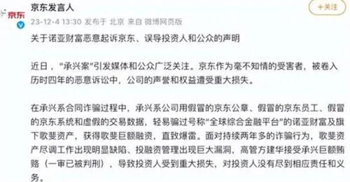根據(jù)IT之家12月4號(hào)最新報(bào)道,京東在4號(hào)發(fā)布了一篇《關(guān)于諾亞財(cái)富惡意起訴京東、誤導(dǎo)投資人和公眾的聲明》的文章。在文章內(nèi)闡述了整個(gè)案件的來(lái)龍去脈,京東稱諾亞財(cái)富是屬于惡意起訴。近日“承興案”引發(fā)了公眾和媒體的關(guān)注,針對(duì)該案件京東也發(fā)布了最新的聲明稱,京東是在該事件中從頭到尾都是一個(gè)毫不知情的受害者,被卷入一個(gè)歷時(shí)4年的惡意訴訟中,公司在這4年的權(quán)益和生育都遭受到了重大損失。