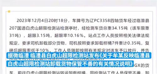 停弦渡派出所接到報警電話之后出面進行調解,白虎山超限檢測站向牟某賠禮道歉,并且賠償給貨主牟某,此次損失的柑橘以及轉運車輛的租賃費用,雙方針對這起事件也達成了和解。事后檢測站對兩件名當班人進行了停崗處理,并且承諾會在后續加強內部的管理,規范工作人員的執法行為,防止這種現象在后續過程中再次發生。