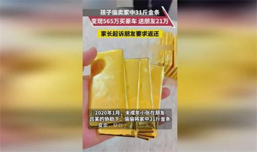 近日,湖北武漢一位16歲少年趁父母不在把家中31斤金條偷走兌現565萬元購買豪車,贈送給朋友20多萬的新聞引起了人們的關注。據了解,這位少年的父親是一位富商,平時喜歡收藏金條,沒想到這位父親多年的積累被兒子揮霍一空。