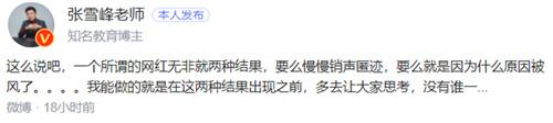 針對此次張雪峰的發(fā)言,有業(yè)內(nèi)人士點評認為,張雪峰的這種言論其實是在制造矛盾爭議,他也是想要通過這種方式來博取眼球的流量,這種操作手法稱其為流量至死都不為過。一方面發(fā)表自極端言論刺激公眾的認知,從而引起群體對立的情況出現(xiàn),另一方面又使用各種名義來賣慘道歉,從而進一步的收割流量給他帶來的巨額利益。