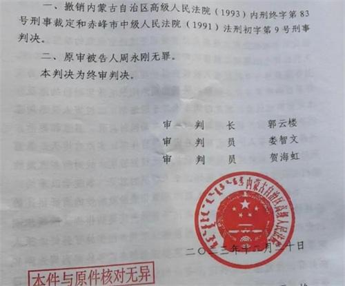 周永剛在日常與人進(jìn)行交往當(dāng)中,從來沒有刻意將自己的那段經(jīng)歷隱藏起來。周永剛表示自己的心是干干凈凈,從來沒有做過虧心事,無論別人怎么想,自己都能接受。內(nèi)蒙古高院對此案進(jìn)行審判時表示,本案當(dāng)中并沒有直接的證據(jù)能夠證實周永剛實施了殺人和強(qiáng)奸,證據(jù)鏈不完整,因此將原判撤銷,判決周永剛無罪。