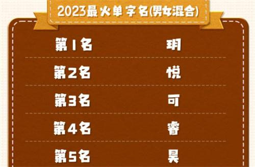 第三名的可同樣不容小覷,這個名字已經連續三年闖進前五,至于悠和玨成為今年度的黑馬單字名,從兩年前的十名開外一直闖入今年名單的前五位,分別位列于第四名和第五名,上述內容便是2023年新生兒爆款名字的排行信息,看到這里希望2024年的寶媽和寶爸們能夠給自己的孩子取一個理想的名字。