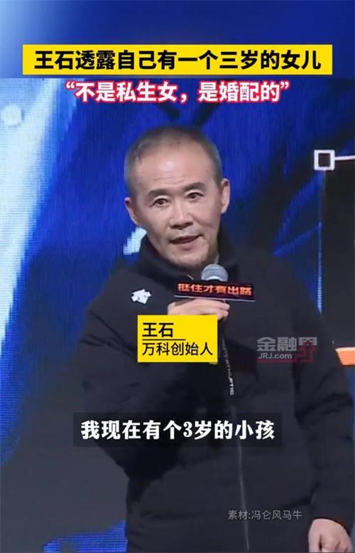 1月5日,萬科房地產(chǎn)創(chuàng)始人王石在一檔直播視頻欄目當中透露自己擁有一個三歲的女兒,并表示這個女兒并不是私生女,是婚配的,他的這個爆料也是迅速的登上了社交平臺的熱搜,引發(fā)了網(wǎng)友的關(guān)注和討論。王石現(xiàn)在是萬科集團董事會的名譽主席,曾經(jīng)還擔任過中國房地產(chǎn)協(xié)會的常務(wù)理事,現(xiàn)任妻子是田樸珺,關(guān)于王石的女兒到底有多可愛,目前還尚未得知,畢竟社交平臺上很少有她女兒的照片。