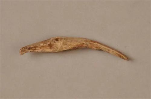 在黑龍江省密山市新開流遺址當中曾發掘出過一只骨雕鷹首,這個鷹首是1972年出土,它擁有著流暢的骨棒曲線,老鷹的眼和喙雕刻的非常形象,仿佛整個老鷹正在伸長脖頸準備展翅高飛一樣。骨雕鷹首所屬的新開流文化其實是遠古部族肅慎人在興凱湖畔所創造的漁獵文明,1972年黑龍江考古工作隊發掘密山興凱湖新開流一帶的時候,總共挖出來了3000多件漁獵文化遺址文物,骨雕鷹首就是其中的一件。