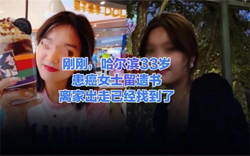 在1月8日哈爾濱患癌癥出走失聯女子目前已經找到,而她的丈夫也表示自己會一直陪在妻子的身邊,不會讓這樣的現象再次發生。在1月2日時家住哈爾濱南崗區的一名33歲女子出走未歸,之前是女士的手機因為沒有電而關機,而且手機信號無法進行查找。在經過不斷的查看監控攝像頭,最終發現這名女士在一棟高層的住宅當中被發現。而找到之后女士也表示自己身患癌癥,走失之間動了輕生的念頭,但是由于沒能放下孩子和家庭我沒能走出輕生的那一步。