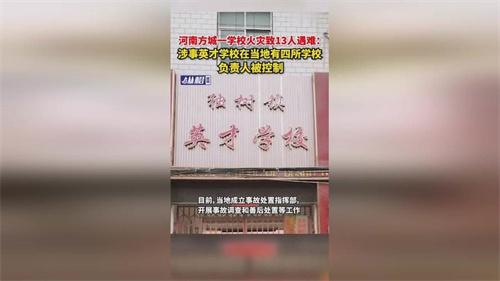 根據(jù)官方的媒體報道,在1月19日的晚上11點,河南南陽市方城縣119指揮中心接到報警之后表示英才學校的宿舍發(fā)生了火災,而救援人員就迅速地趕到現(xiàn)場進行救援,不過火勢迅速蔓延,最終還是有13人遇難,1人受傷,而傷者也正在醫(yī)院救治,身體特征較為穩(wěn)定。事故發(fā)生之后,當?shù)匾渤闪⒘嗽撌鹿实闹笓]部中心,迅速的展開對于該事件的詳細狀況的調(diào)查,同時對于善后處置工作,也有相關的人員進行負責,而對于相關負責的學校工作人員也已經(jīng)得到了相應的控制。