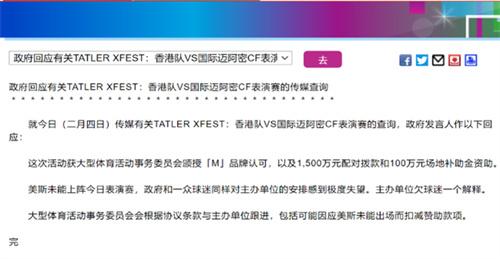 在媒體見面會上,政府相關人員就此說明情況,在合約里面曾經規定梅西除非有影響到安全,健康等正當理由,否則必須進行比賽至少45分鐘。在比賽開始之前,主辦方也曾與梅西確認比賽流程,確定梅西將在下半場上場,但是就算香港政府多次要求與球隊達成共識,以其他措施進行彌補,也都未能滿足粉絲的要求。