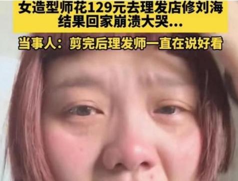 導讀 四川一名女子在春節來臨之際,花了129元到理發店理發,想要理一個美美的發型,但是在理完之后卻對自己剪短的劉海很失望,發型師對于這樣的