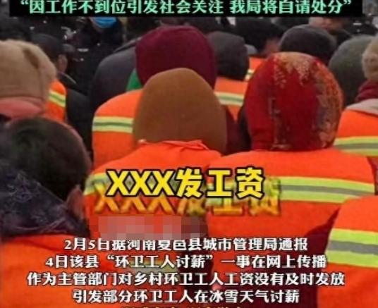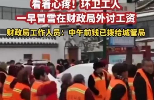 導讀 河南夏邑縣數十名環衛工人冒雪討薪事件在網上廣泛傳播。夏邑縣城管局對此事進行回應表示當地財政局已經足額將托管工資費用全部撥付給了當地