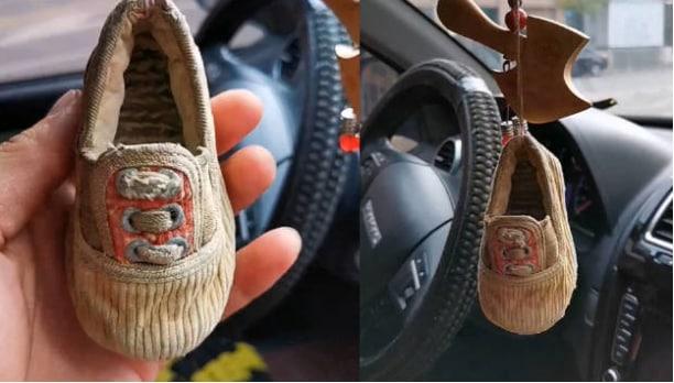 導讀 近日一則新聞刷爆了網友們的朋友圈,在這個新聞當中有一名來自貴州黔南的男子在朋友圈曬出了自己的汽車掛件,這個掛件是一個破舊的小鞋子,看起來很像小孩穿的。