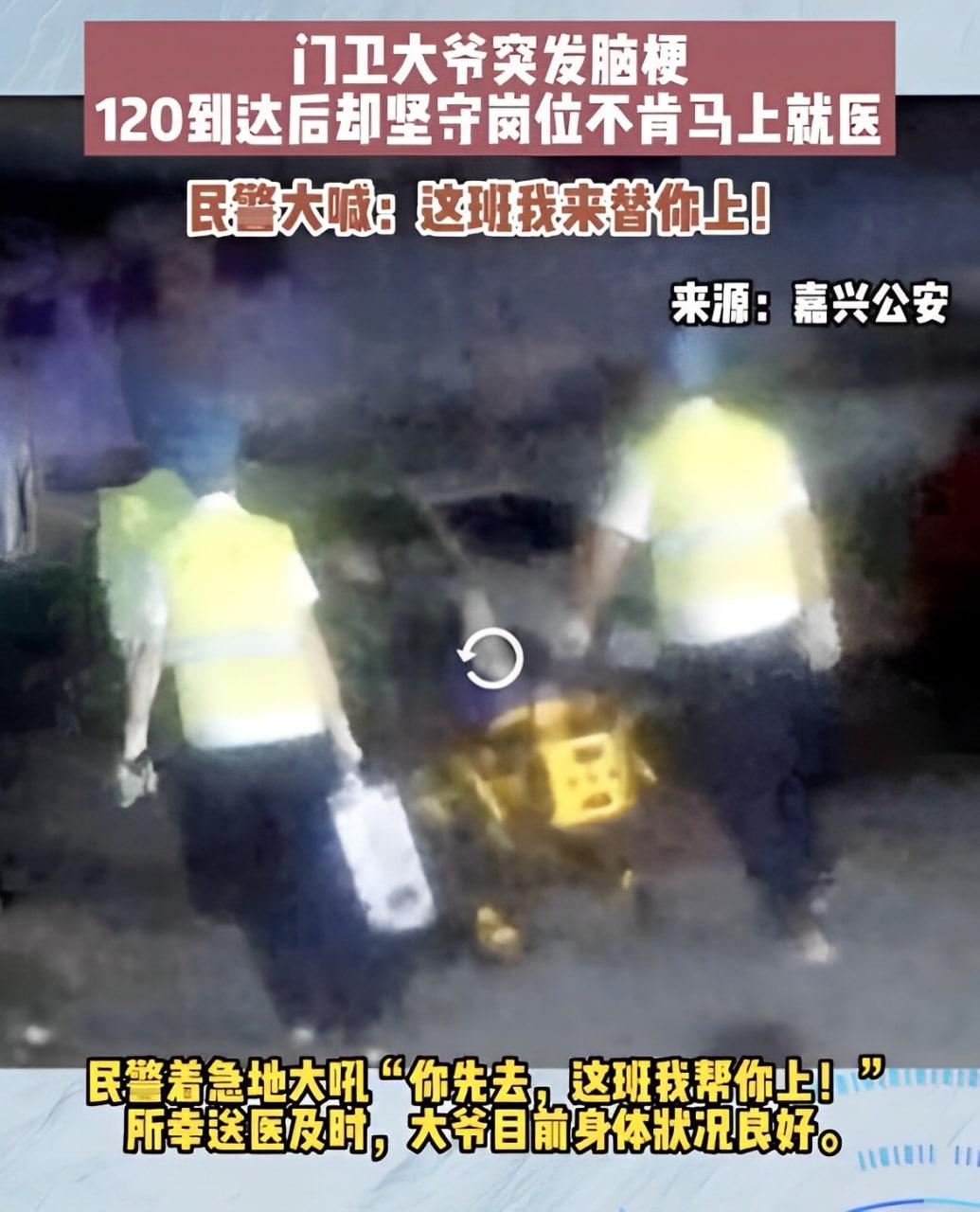在今日在浙江嘉興地方在企業當門衛的孫師傅突然出現了急癥,無奈之下只能夠報警尋求相應的幫助,在民警到達的時候,孫師傅整個身體的左邊已經毫無知覺,個人的意識也已經并不清晰了,因為門衛室要求是需要24小時都有人值班的,所以孫師傅無論如何都不愿意離開自己的崗位,要等待交班時間,民警因此感到十分心急,大聲的向孫師傅喊道,你快點走這個班我幫你上,幸虧民警將孫師傅送到醫院的時候比較及時,所以孫師傅目前正在康復中,并沒有什么大礙。