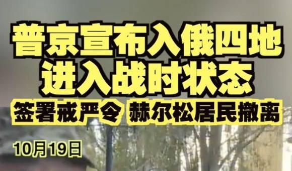 導讀 10月19日俄羅斯總統普京宣布盧甘斯克,頓涅茨克,扎波羅熱和赫爾松這4個地區將加入俄羅斯地區,并且將會進入戰時狀態。