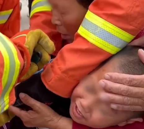 在視頻中能夠看出,當(dāng)時(shí)男孩的身旁最少有三位消防隊(duì)員,其中一名抱著男孩子,還有兩名隊(duì)員一位扶著男孩的手,一位在努力地拆除著鎖扣,今天消防隊(duì)員在全神貫注的拆除著男孩手指上的鎖扣,這名男孩也在全身灌注著,吃著干脆面,這個(gè)畫(huà)面看起來(lái)非常的搞笑。