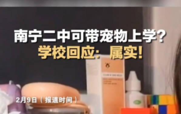 近日有網傳消息稱南寧二中可帶寵物上學,學校也會發專屬入校證,在網上消息中表示要想帶寵物進入學校,只要給寵物打全疫苗,就可以向學校申請寵物弱校證,同時還將會簽署一份相關的文明養寵公約,帶寵物進學校就要按照公約實行并管理自己的寵物,對于網傳的這個消息,學校作出回應稱情況屬實,并表示目前只在高中部推行。