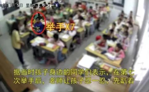 根據郭父提供的教室監控方面顯示,在2020年11月5日,這家涉事學校的某教師中,在上午10:21~10:31之間,一名穿藍色衣服的男孩有7次舉手示意表示自己身體不適,但任課老師并沒有將男孩帶離教室,在男孩第7次舉手的時候,老師只是和男孩簡單的說了幾句,事情發生后,同班的一些學生告訴男孩的家長說當時老師和男孩說讓其先忍忍,還讓記趴在桌子上休息。