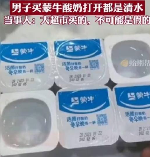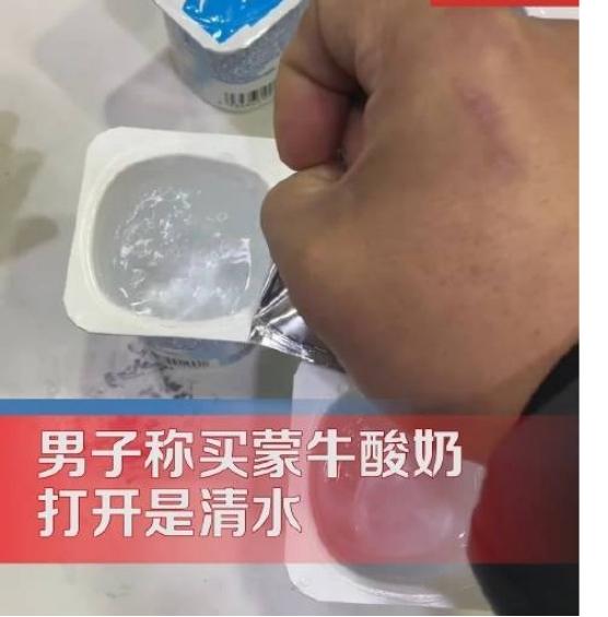 近日江蘇徐州睢寧縣的一名男子吐槽稱在大超市購買的蒙牛酸奶,打開之后全是清水,任何味道都沒有。蒙牛方面于2月13日回應稱針對這一問題正在進行內部排查。當地的監管部門表示已經和消費者將此事處理好。