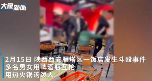 近日網友在網上曝出一則視頻,該視頻顯示在2月17日陜西西安家火鍋店當中發生打架案件,在視頻內容當中有多名男女用酒瓶開始互掄,甚至出現有人又滾燙的火湯鍋直接向對方潑過去,目前警方已經介入調查,證明確有其事,具體過程正在調查之中。