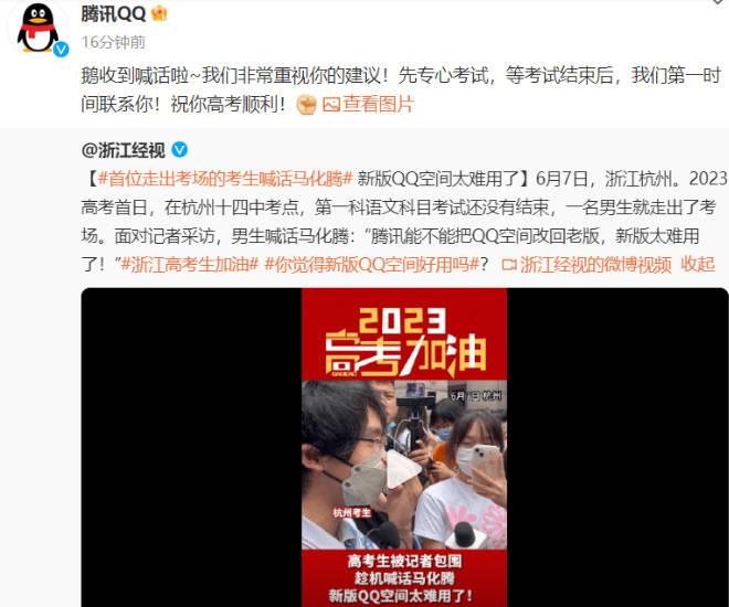 北京時間6月7日,這一天迎來了2023年的高考,無數為這一天奮斗努力三年的欣欣學子,紛紛懷著激動的心情踏入了考場,然而就在高考第1天的杭州,十四中考點中第1科目語文考試還沒有正式結束,就有一名男生已經從考場走了出來,這名男生剛剛走出來之后就接受了當地記者的采訪,在面對記者遞過來的話筒,這名男生沒有任何猶豫的就直接隔空喊話馬化騰表示騰訊新版的QQ空間太難用了,能不能將QQ空間給改成老版。